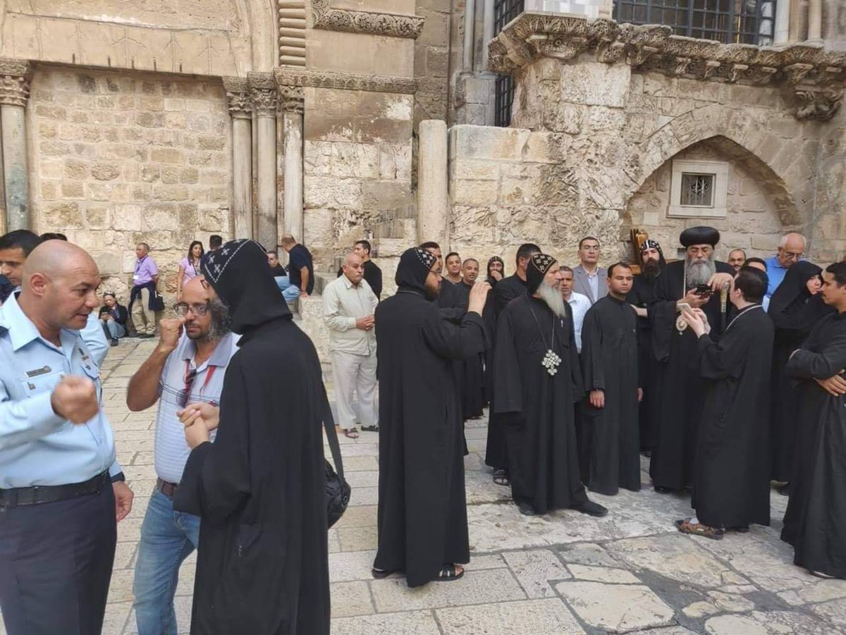 رهبان ارثوذكس عملو وقفة احتجاجية في فلسطين قدام الكنيسة ،، جت قوات الاحتلال الصهيوني ضربتهم وسحلت قس في الارض واعتقلت بعضهم ،،