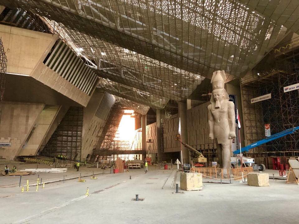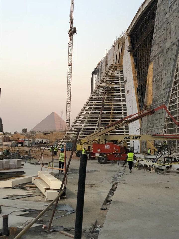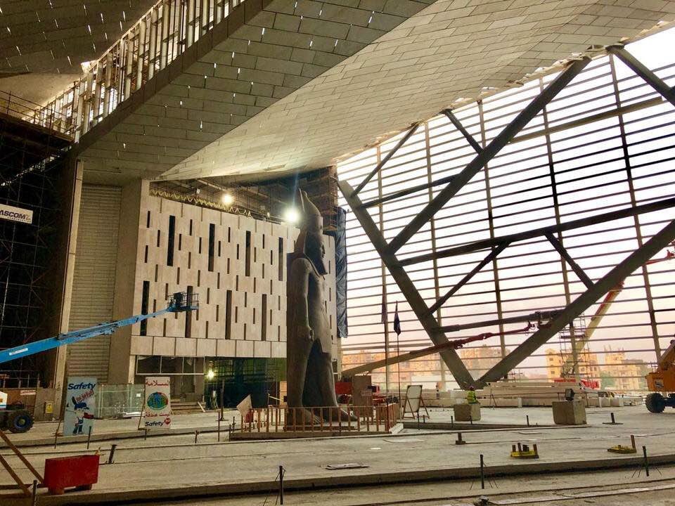 المتحف المصري الكبير على مساحة 117 فدان، والذي سيكون تحفة معمارية، فواجهة المتحف ستكون مكسوة بحجر الألبستر الذي يسمح بنفاذ الضوء من خلال أشكال هندسية، والباحة الرئيسية يتصدرها تمثال رمسيس الثاني الضخم. وجدران المتحف من جهة الأهرامات ستكون بانوراما زجاجية
