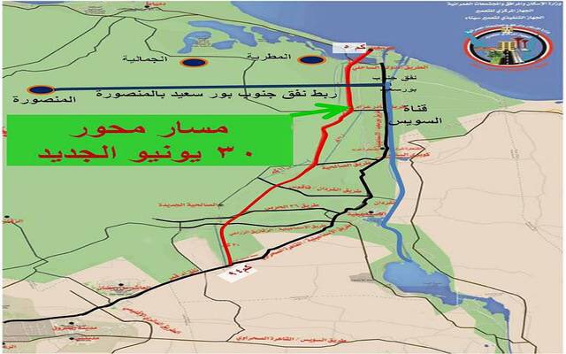 أعمال الأسفلت في مشروع محور 30 يونيو، ويبلغ طوله 95 كم يبدأ من بورسعيد مرورًا بالإسماعيلية إلى اتجاه القاهرة، ويعتبر بمثابة طريق دولي مواز لقناة السويس، ويختصر المسافة من بورسعيد إلى الإسماعيلية من 80 كم إلى 30 كم، ويصل بين بورسعيد والقاهرة في ساعة وربع.