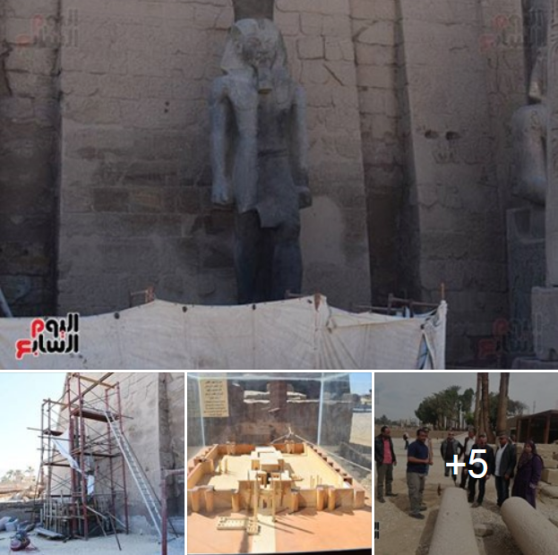 تمثال الملك رمسيس الثانى فى إيد أمينة.. أمين الأعلى للآثار: قرب انتهاء ترميمه لينضم لمعبد الأقصر.. ومدير المعبد: ارتفاعه 12 مترا بوزن 75 طن جرانيت وردى.. واستخدمنا مواد مصرح بها دوليا فى الترميم